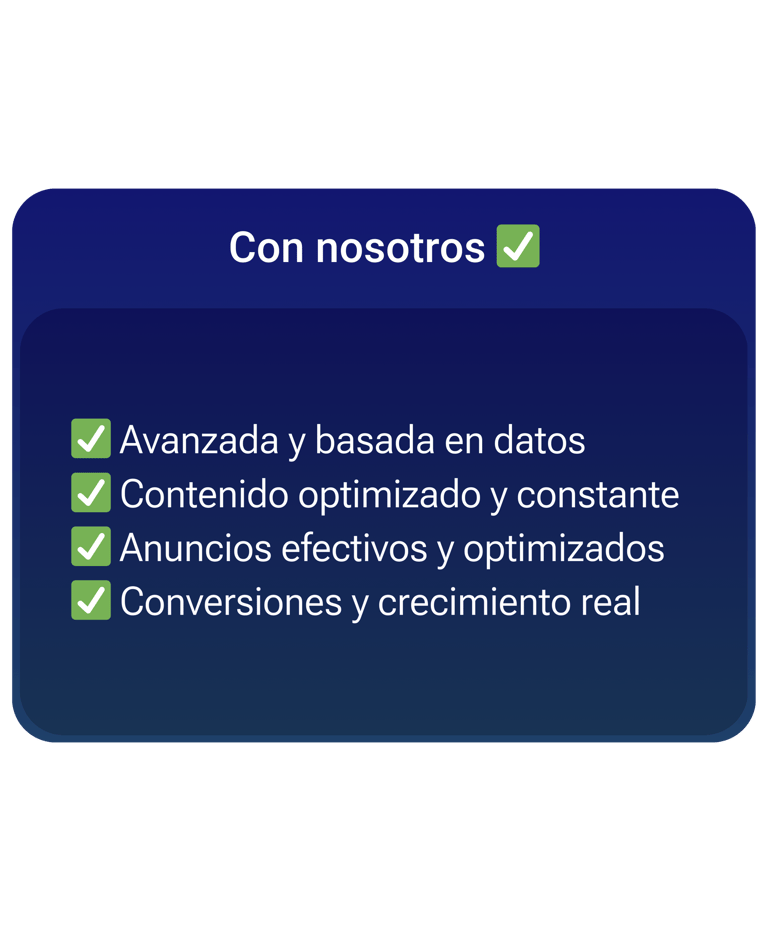 Medimos, ajustamos y escalamos cada estrategia para aumentar ventas de forma constante.